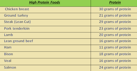 Steak (Lean Cut) – Serving size 5oz., 29 grams of protein, 206 calories.