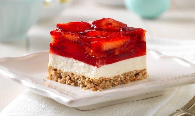 ating smart? You’ll like this one. Fluffy, creamy strawberry squares with a crushed pretzel crust keep things interesting.